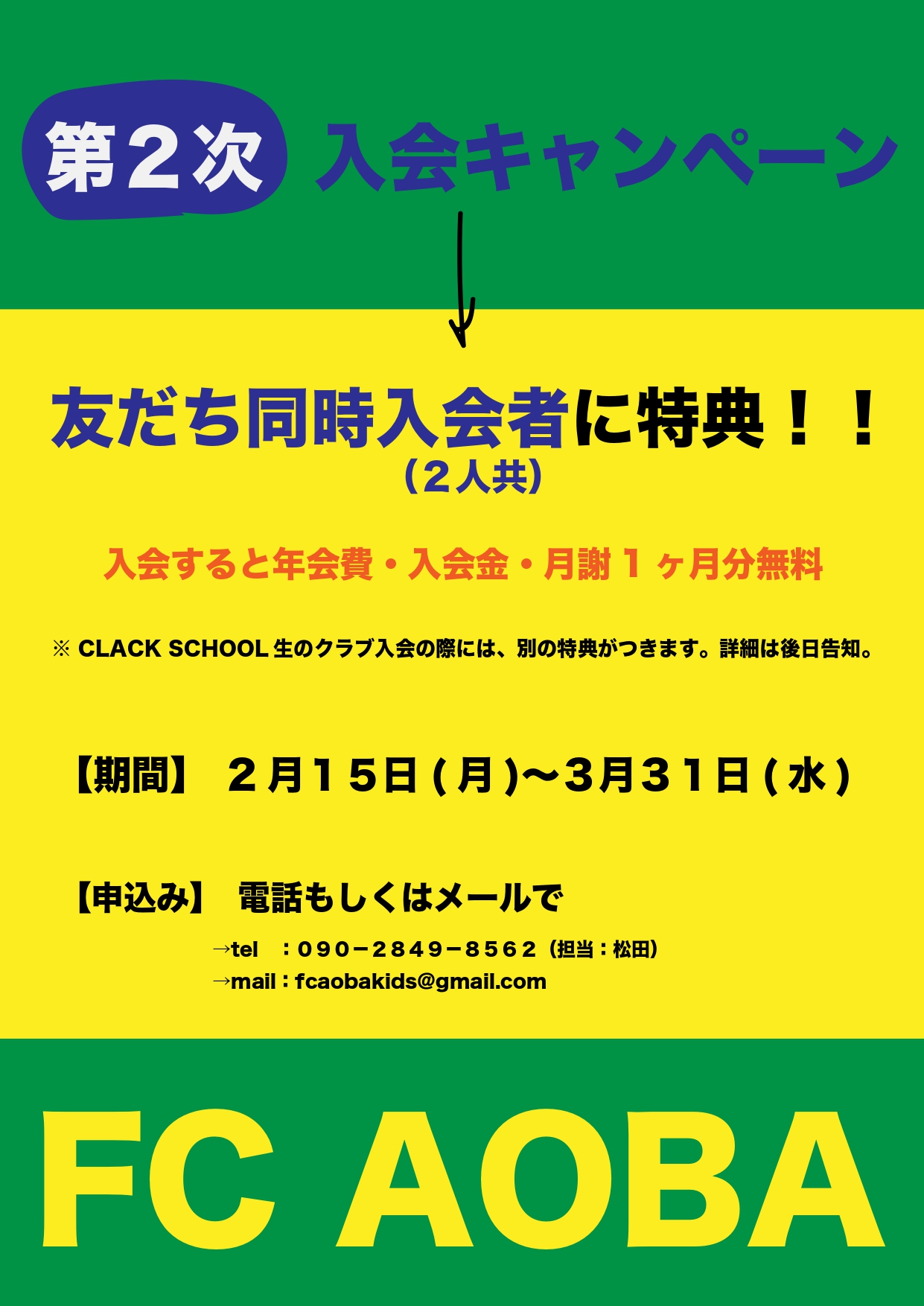 令和3年度クラブ生募集 第2次入会キャンペーン
